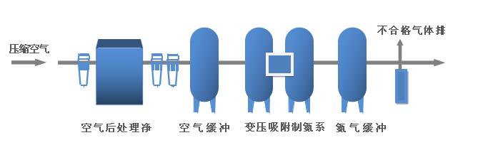 【制氮所需二個(gè)基本條件:】1、壓縮空氣 2、電源